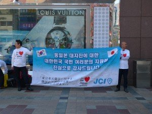 偶然にも観光庁の溝畑長官がソウルで訪日旅行の促進で、記者会見を開くことを知り、18時30分よりソウル・ロッテホテルでおこなわれた記者会見にオブザーバーで参加させていただいた。我々が作成した横断幕を背景に、そしてDO FOR JAPANのバッチを付けて、溝畑長官が記者会見をやってくれたのである。また、街頭での活動ではソウルJCのメンバーにもお手伝いいただいた。国を越えて事業をおこなっていく必要性を訴えてきたが、今回そのような協働での事業が出来た事に心より嬉しく思っている。