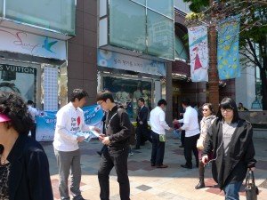 そして、ソウル入りしているアジア誘客推進委員会の一行がしっかりとミッションを遂行してくれたようだ。韓国の皆さんが今回の東日本大震災以降に、おこなってくれた支援のお礼、そして福岡・九州の観光PRとして、ガイドブック等をソウルの繁華街ミョンドンで配布した。